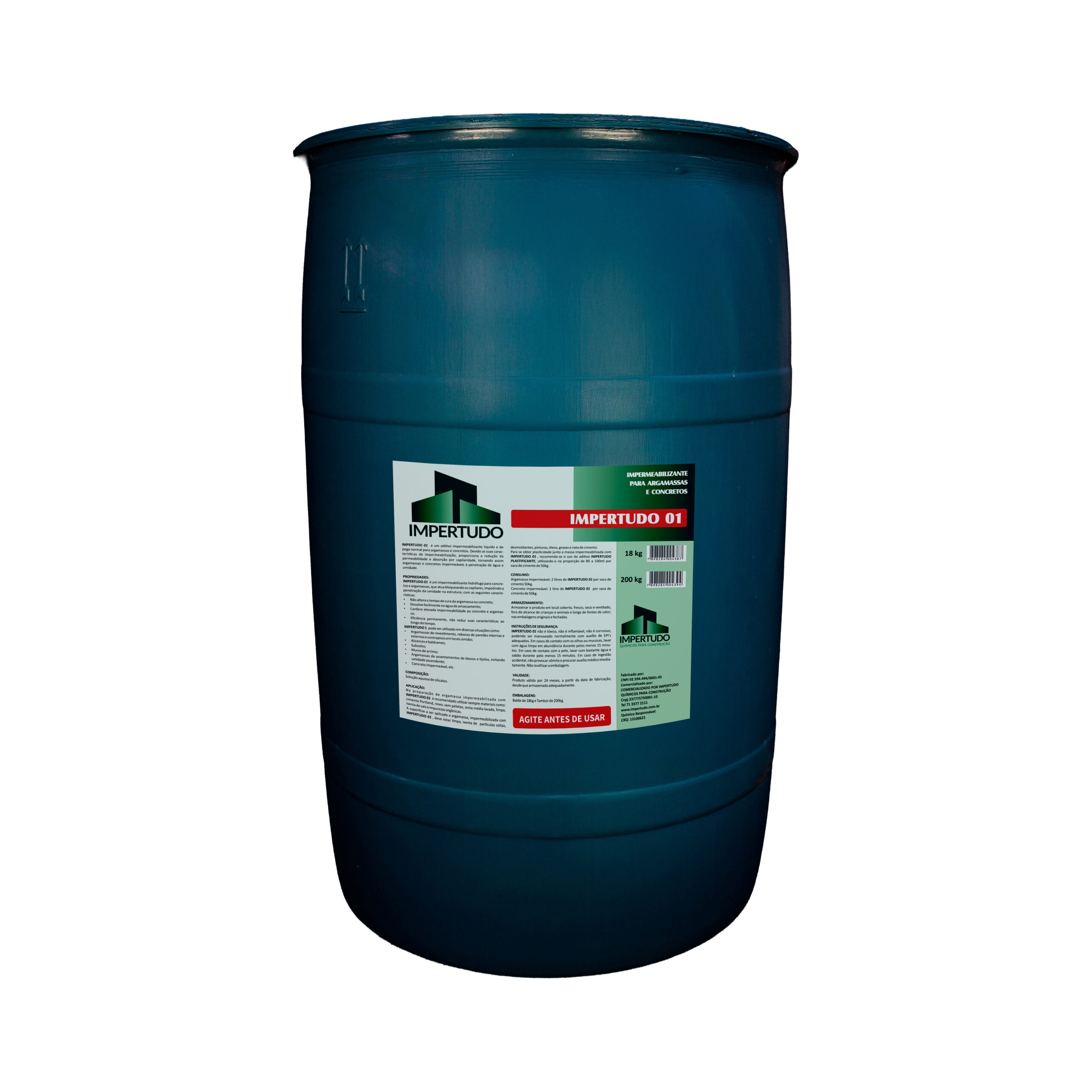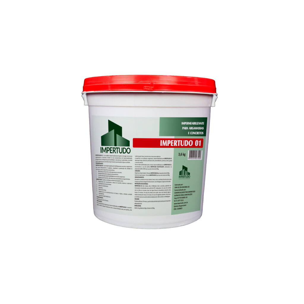Adicionar IMPERTUDO 01 em parte da água de amassamento, conforme a dosagem recomendada. Para se obter plasticidade junto à massa impermeabilizada com IMPERTUDO 01, recomenda-se o uso do aditivo IMPERTUDO PLASTIFICANTE, utilizando-o na proporção de 50 a 100 mL por saco de cimento de 50 kg.