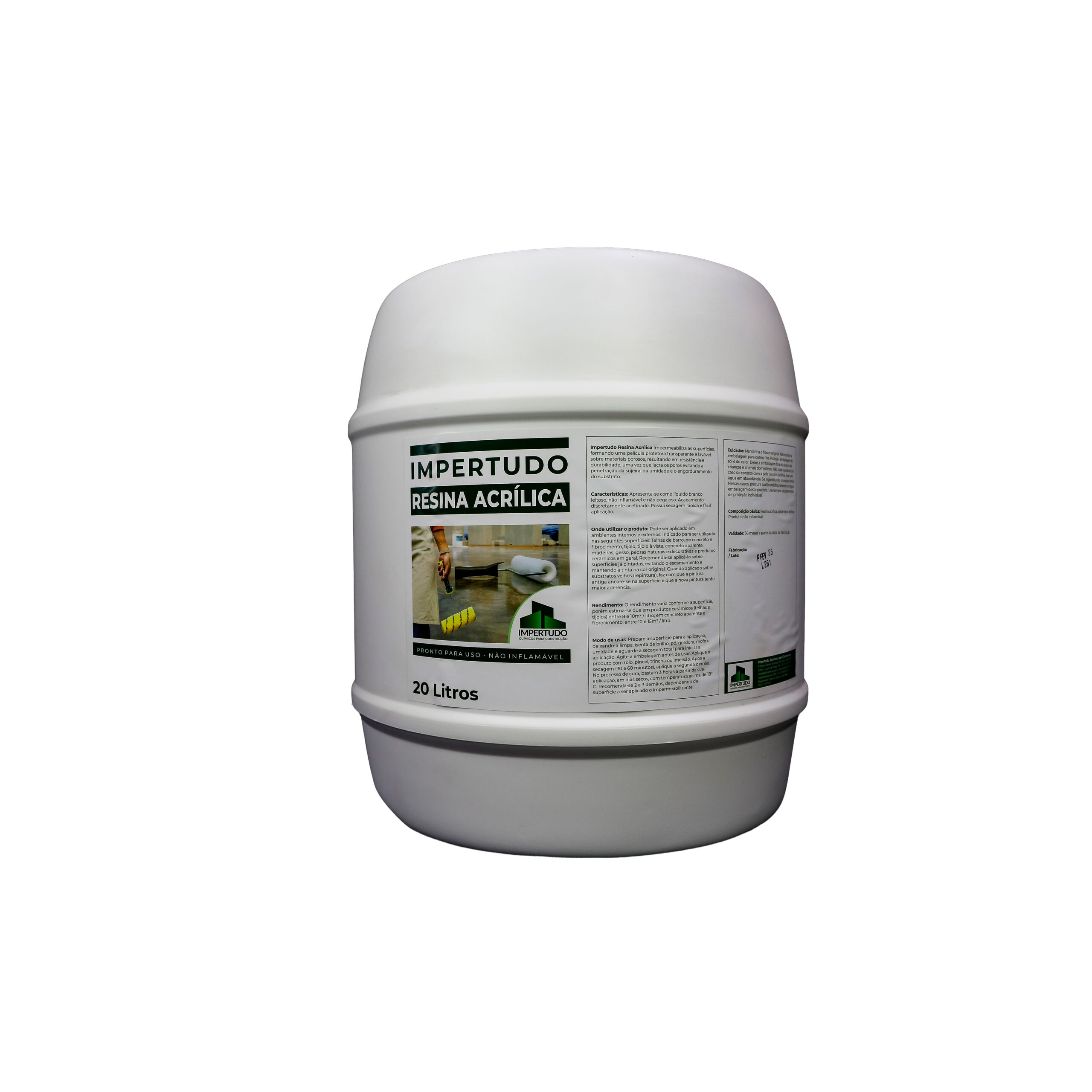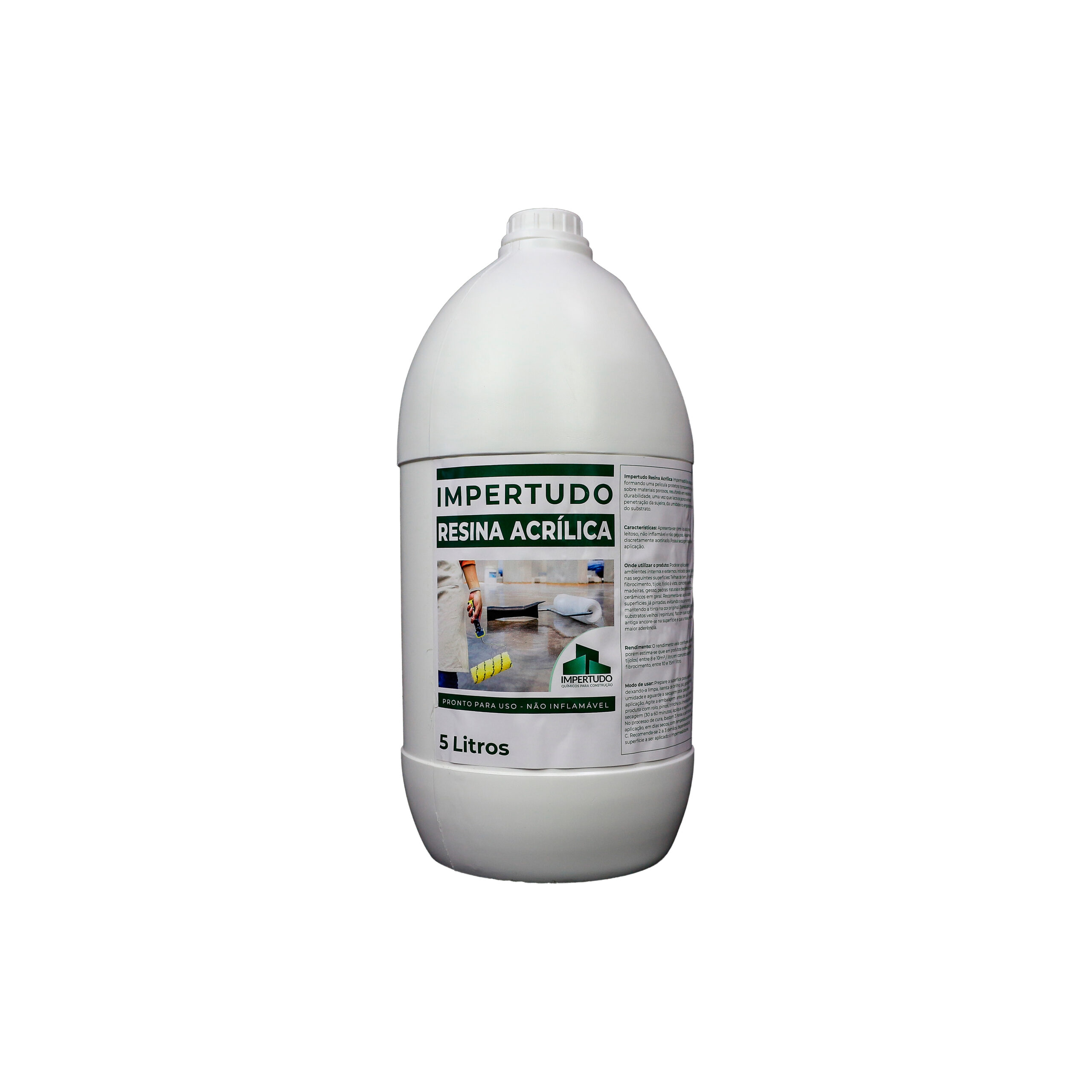 O impermeabilizante IMPERTUDO RESINA ACRÍLICA pode ser aplicado com rolo, pincel, trincha ou por imersão. Após a primeira demão, aguarde de 30 a 60 minutos para a secagem e, em seguida, aplique a segunda demão. A secagem do produto ocorre em aproximadamente 3 horas, considerando tempo estável com temperatura acima de 18 °C. Recomenda-se aplicar de 2 a 3 demãos, conforme o tipo de superfície a ser impermeabilizada.